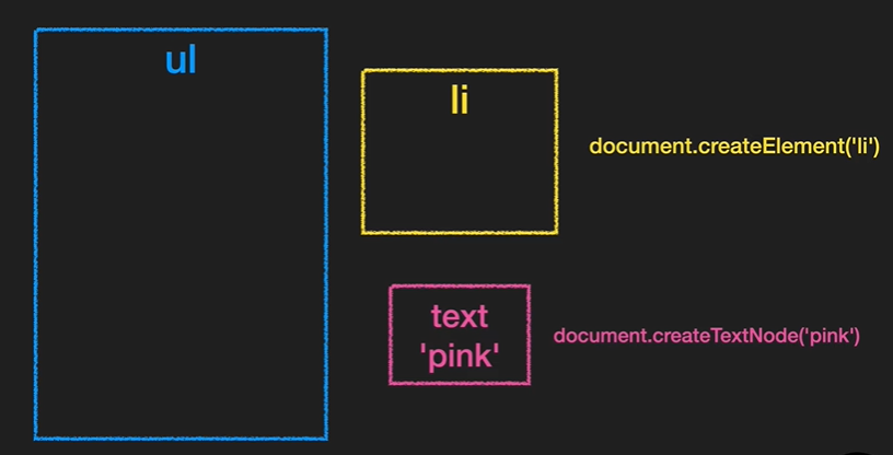 const newText = document.createTextNode('pink');