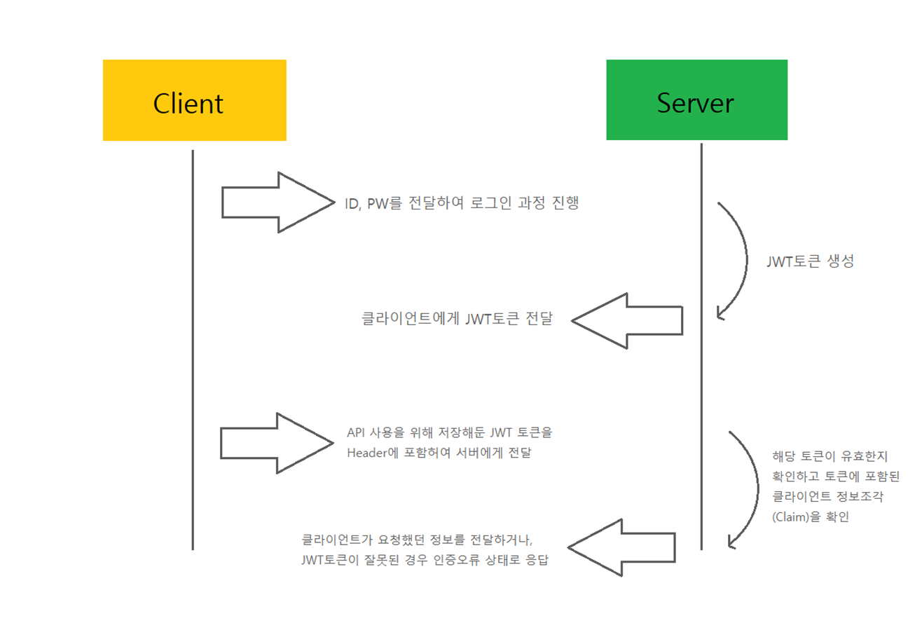 - 서버에서는 토큰을 복호화하여 유저 정보를 얻고, 데이터베이스에서 해당 유저의 권한을 확인한 후, 클라이언트의 요청을 처리하여 응답을 보내준다.