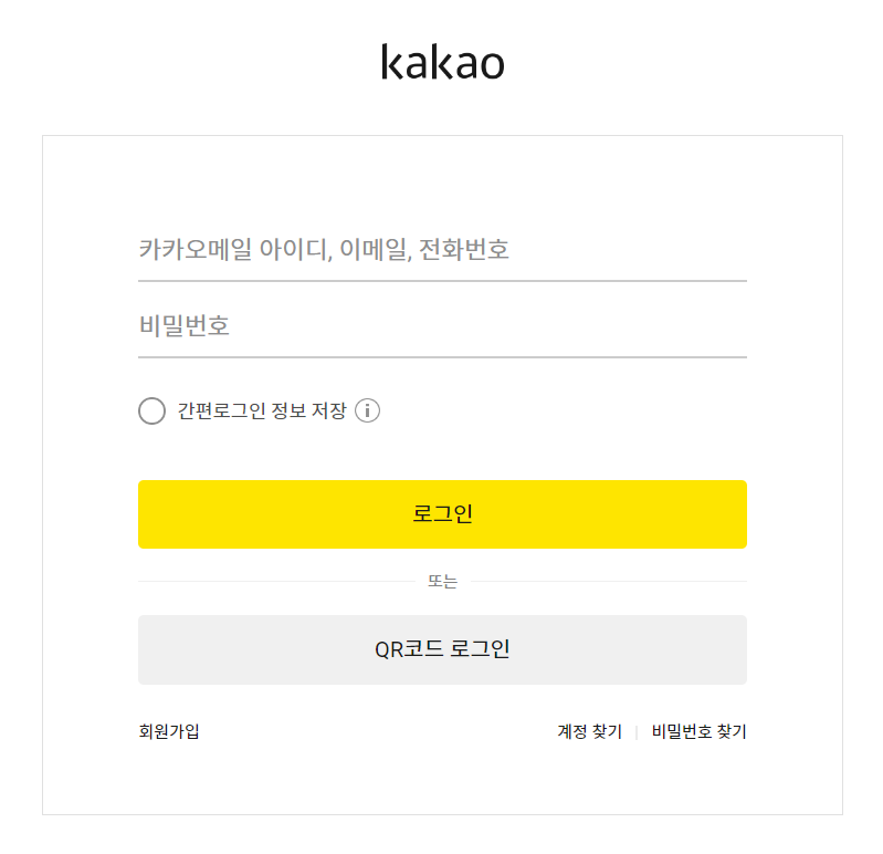 link 주소로 들어가면 카카오 계정 정보를 입력할 수 있는 창이 뜨고, 인가 코드를 받을 수 있다.