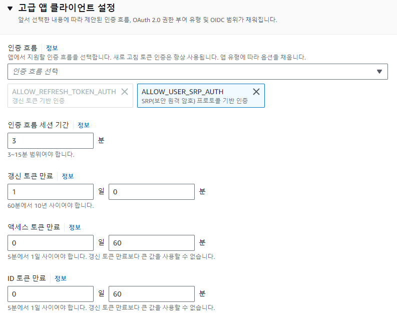 백엔드 서버에서 인증을 처리하기 때문에 기밀 클라이언트를 설정해주었고, access-token은 1시간, refresh-token은 1일로 설정해주었다.