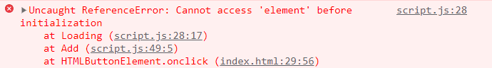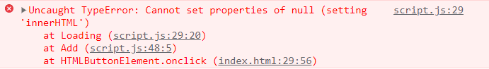 다음과 같은 에러가 발생했다. 이것은 DOM 요소를 로딩하는 부분에서 생긴 오류이다. 오류 발생 원인 예상은 다음과 같다.