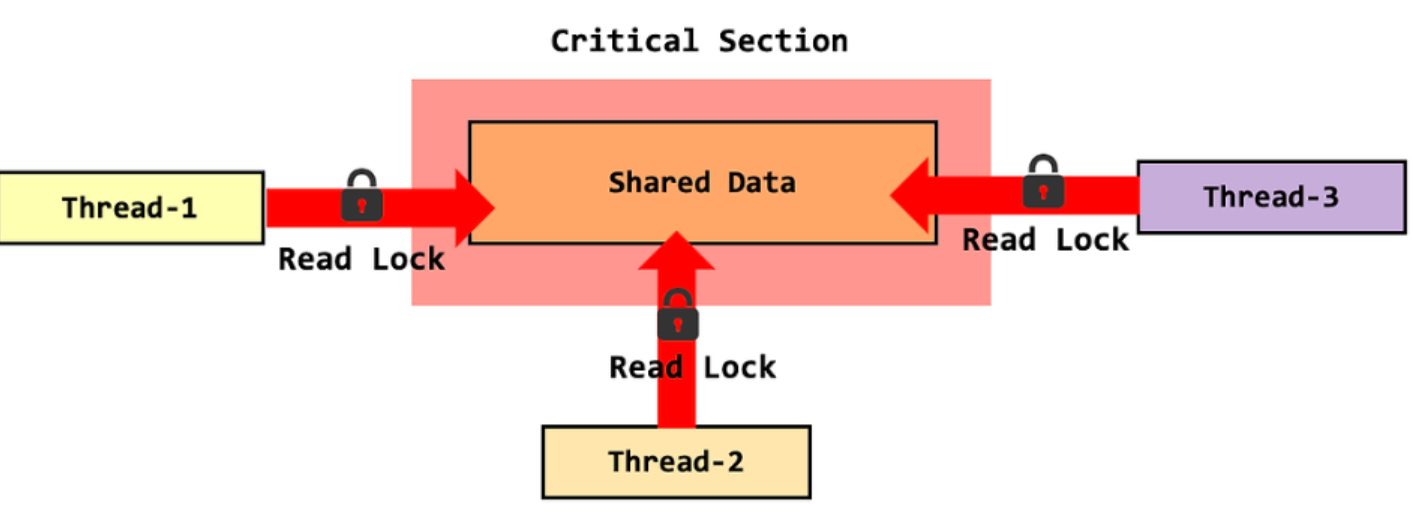 - 여러 스레드가 동시에 공유 데이터를 읽을 수 있다.