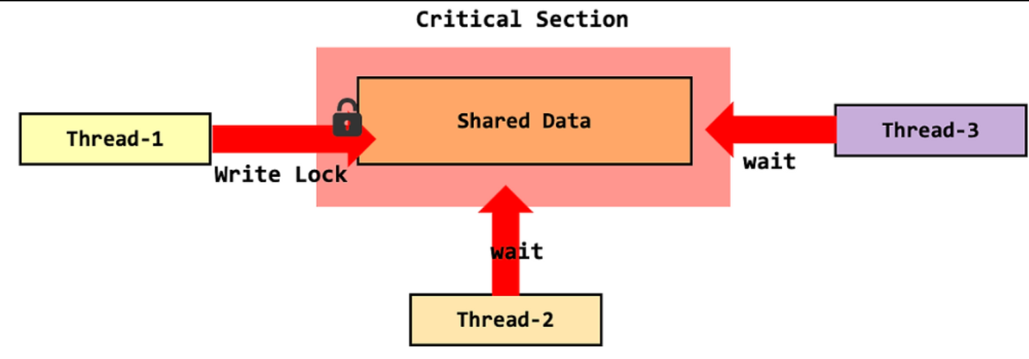 - 쓰기 작업을 수행하는 스레드는 데이터에 대한 독점적 접근 권한을 요구한다.