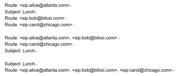 - 프록시 처리에 필요한 header field(예: Via, Route, Record-Route, Proxy-Require, Max-Forwards, Proxy-Authorization)는 메세지 상단에 표시하여 빠른 구분 분석을 용이하게 한다.