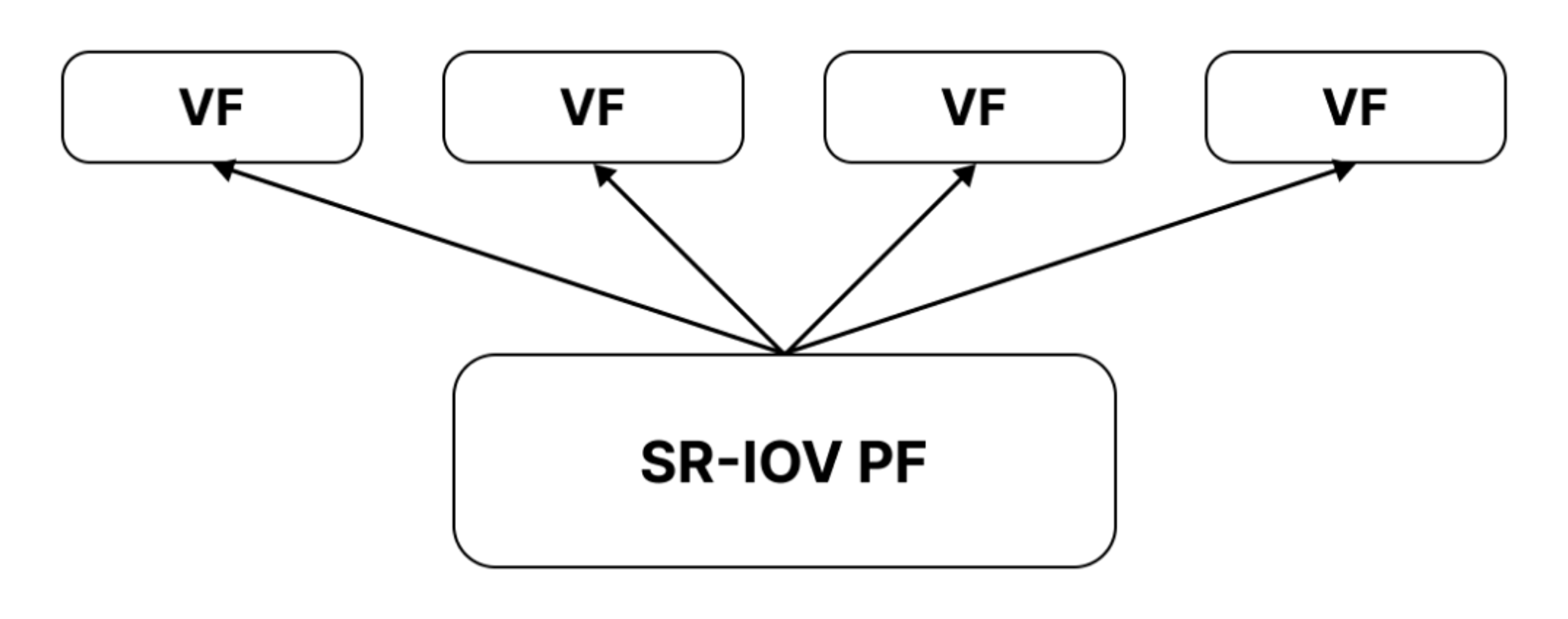 SR-IOV 환경에서는 이 Function이 다음과 같이 나뉜다. 이렇게 분리된 가상 PCI 장치는 각각을 독립적인 네트워크 인터페이스처럼 사용할 수 있다.
